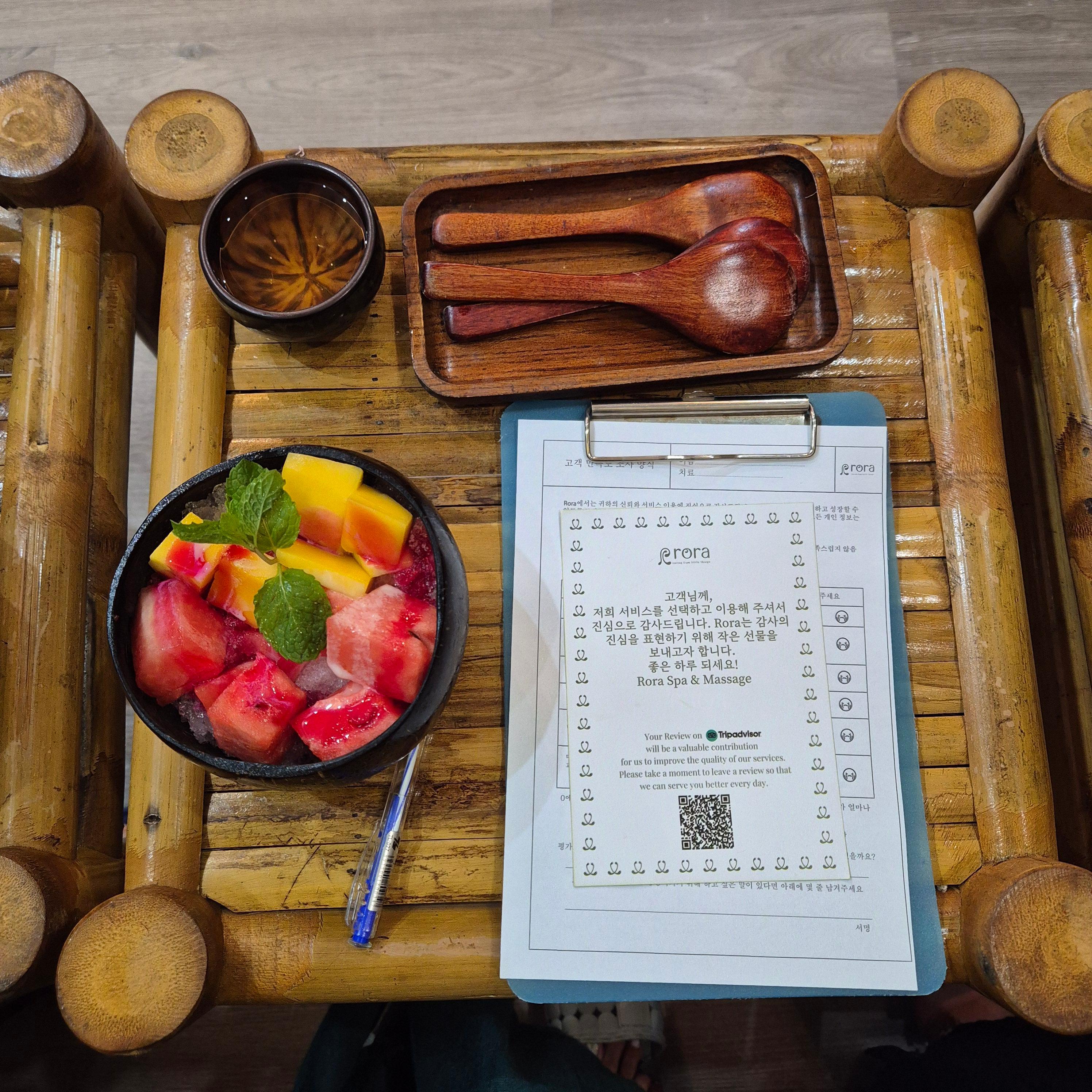 마사지 전 후로 티와 화채등을 준비해 주셔서 너무 좋았어요.