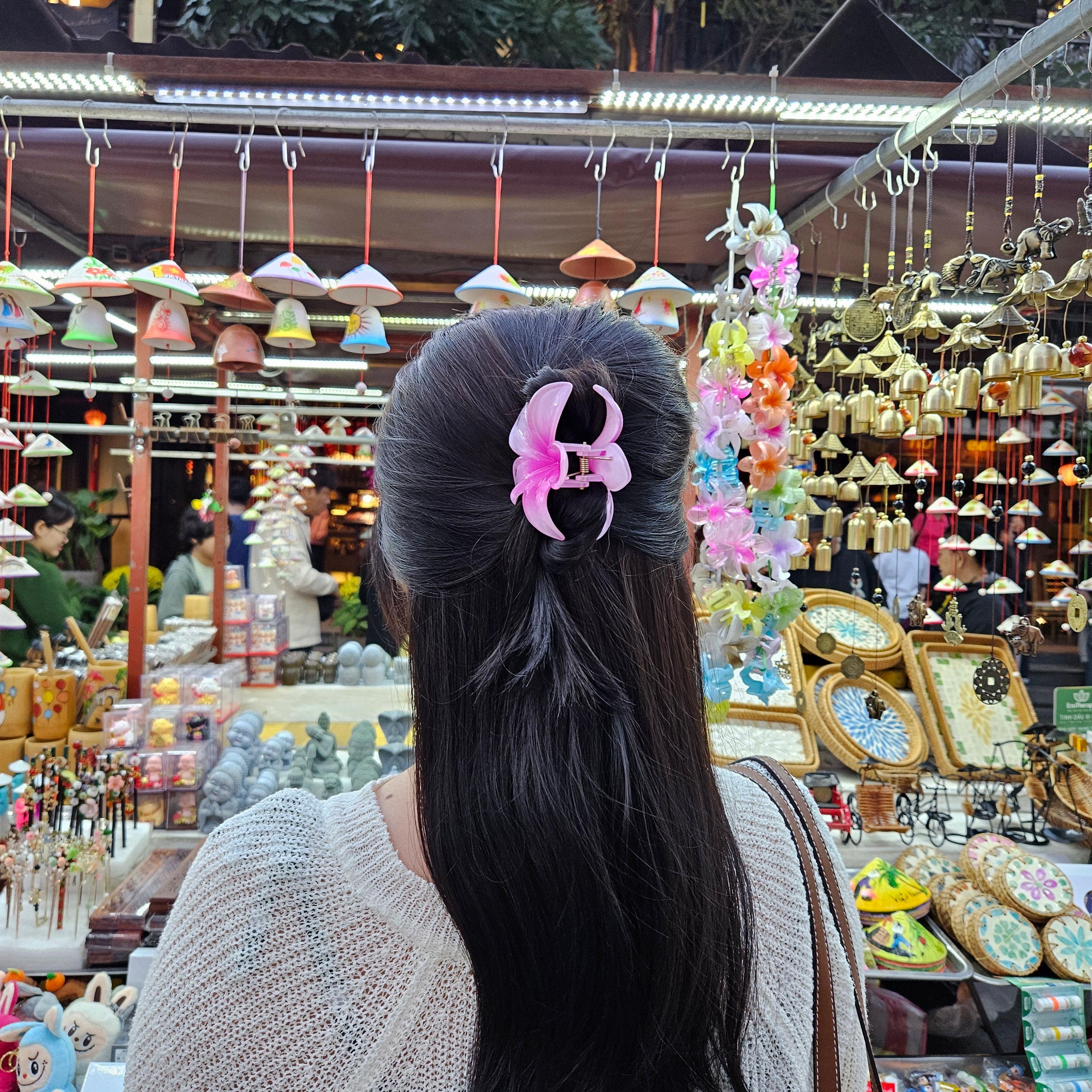 그러면서 친구들은 하와이안 꽃 모양 집게핀을 샀습니다.